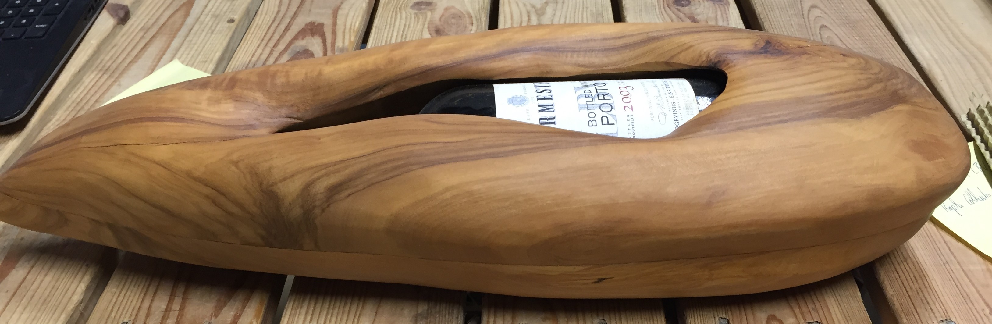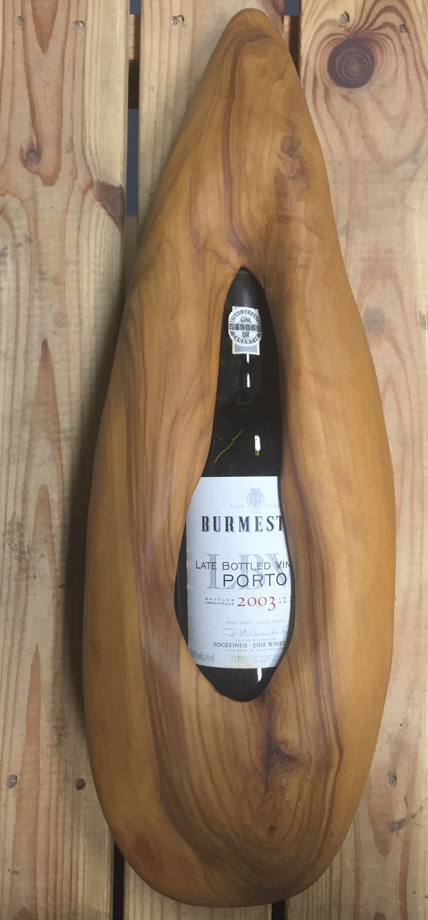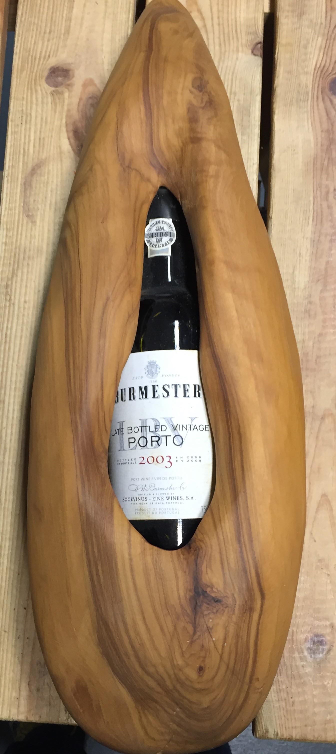 Der Burmester LBV 2003 wurde so in eine Holzskulptur integriert, die man aufsägen muss, um an den Vintage Port zu gelangen. Ein tolles Präsent für besondere Gelegenheiten wie Geburtstage, Jubiläen, Firmenveranstaltungen oder sonstige angemessen Anlässe.